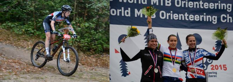 At the first race of the World MTB Orienteering Champs yesterday Emily Benham won the Middle distance Bronze medal in 54:06 for the 8.8km course, only 34 seconds behind winner Gaelle Barlet's time of 53:32. Having missed Middle distance Gold by 34 seconds last year in Poland, and by 35 seconds in Estonia in 2013, Emily was "both happy and disappointed" with her result.