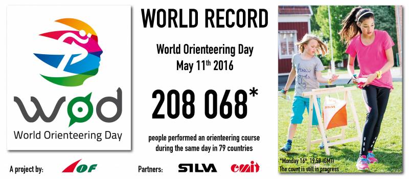 Last night (Monday 16 May 2016) at 19.59 (GMT), the International Orienteering Federation have confirmed that a new WORLD RECORD has been achieved regarding participation in orienteering activities during one day. The count is still in progress and therefore the challenging target of 250,000 participants may still be achieved!