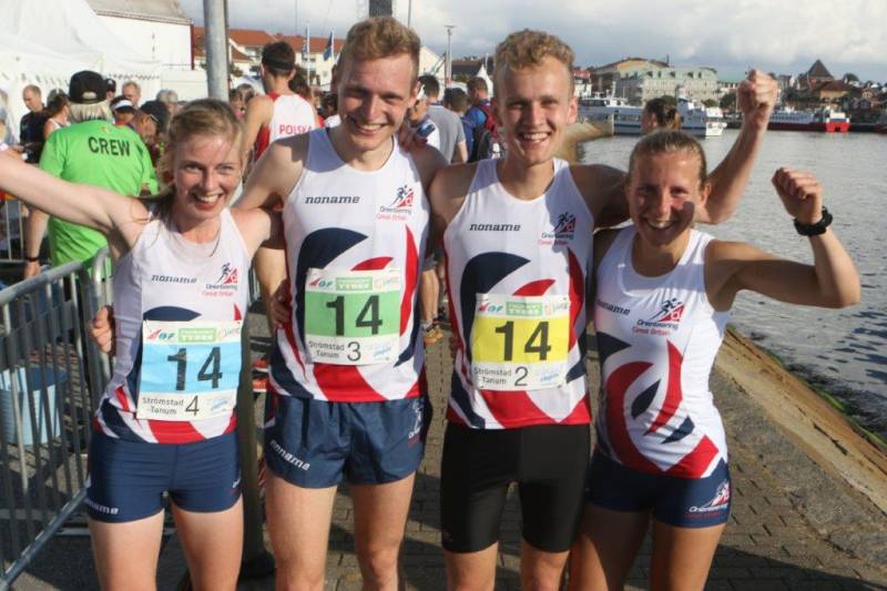 Great Britain Mixed Sprint Relay Team (left to right): Cat Taylor, Kris Jones, Peter Hodkinson, Charlotte Ward. Photo credit: Erik Borg